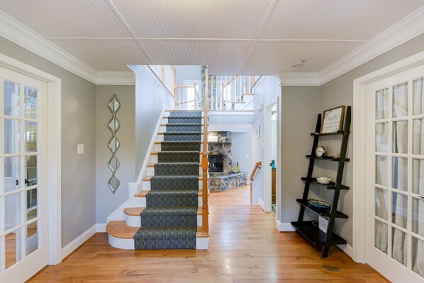 The Main House contains a Game Room, Projector Screen Movie Room, Dining Room, an Indoor Bar, a lower level Kitchenette, an outdoor Hot Tub, and a light-filled, open-concept Main Level. The expansive decks outfitted with grills, propane fire pits, and cozy chairs allow you to soak in the fresh air and river views. The Estate also contains a pool with an adjacent Tiki Hut for lazy afternoons along the Potomac River. You’ll find a shed full of outdoor games, an assortment of kayaks available for use during your stay, as well as a sports court for basketball, tetherball, and pickleball. Potomac Overlook Farms is truly a vacation destination designed to bring you closer to the ones you love.