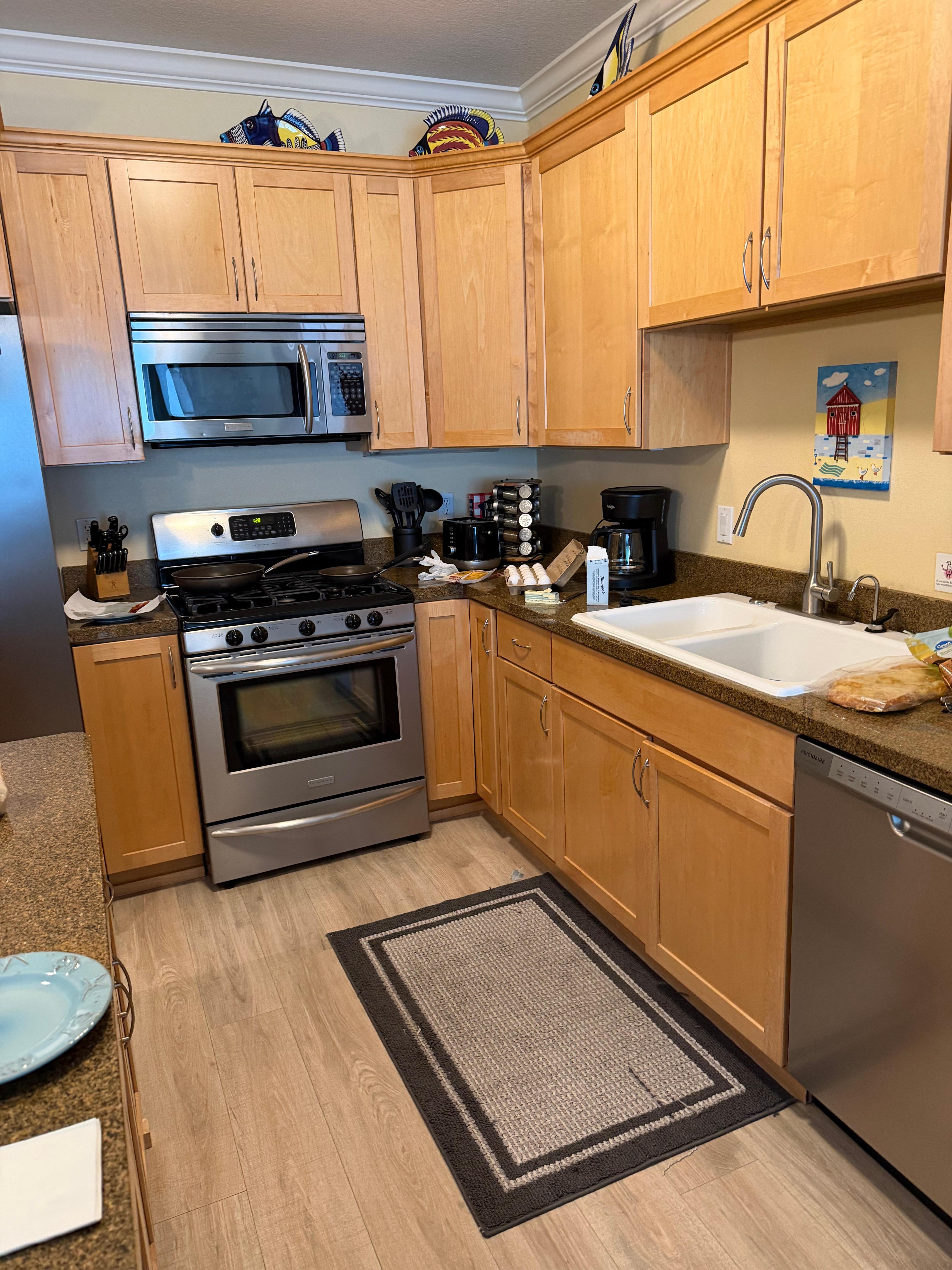 We stayed here over 4th of July. Very clean place with washer and dryer, full fridge and freeer, stove/oven/microwave with available cooking ware and utensils. Comfy beds and it even had some board games and books available. Can’t beat the private hot tub on the balcony. Also a great view down overlooking the beach. My only thing to bring attention to is it’s a little walk to where you have access to stairs that take you down to the beach. Other than that and not knowing that detail when I booked, I have no other complaints! Their communication was great and the kids loved the indoor pool!