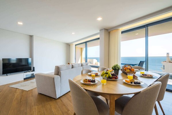 A private terrace offers front-row seats to spectacular sunsets over the Atlantic, with views stretching as far as the eye can see.