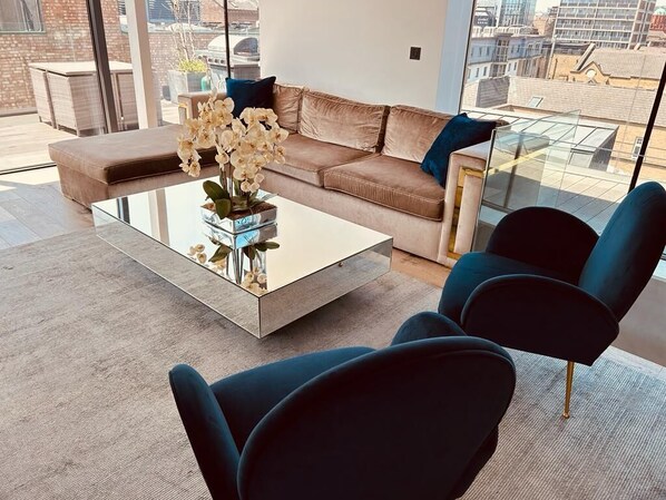 Three bedroom duplex penthouse with wraparound terrace, overlooking one of Shoreditch's most iconic locations.