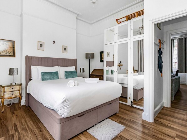 The bedroom is a peaceful oasis with soft linens, a comfy bed, and tasteful decor to ensure a restful night's sleep. Thoughtfully designed, it provides a calm and serene atmosphere, perfect for unwinding after a day of exploring London.