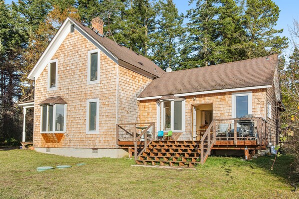 This vintage farmhouse is tucked away at the end of a country lane on the west side of Lopez Island, offering sunset views that reach the Olympic Mountains in the distance. You'll be a half-mile walk to Isabel's Espresso, Ursa Minor, and other favorites in town, and just three miles west of Spencer Spit State Park. The house is also an easy, four-mile drive south of the ferry landing!