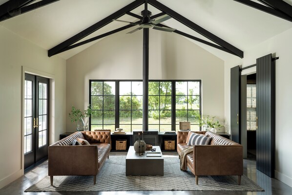 Escape to this light-filled countryside cottage retreat minutes from Baylor University, Downtown Waco, and the BCH Arena equestrian facility. Enjoy your morning brew from the Keurig or French press on the front porch rocking chairs, overlooking scenic views. Inside, relax with the warm sounds of the record player and a nostalgic moment. Once a humble barn, this peaceful retreat blends rustic charm with modern comfort, perfectly placed for easy trips to Waco, Baylor, shops, and local restaurants.