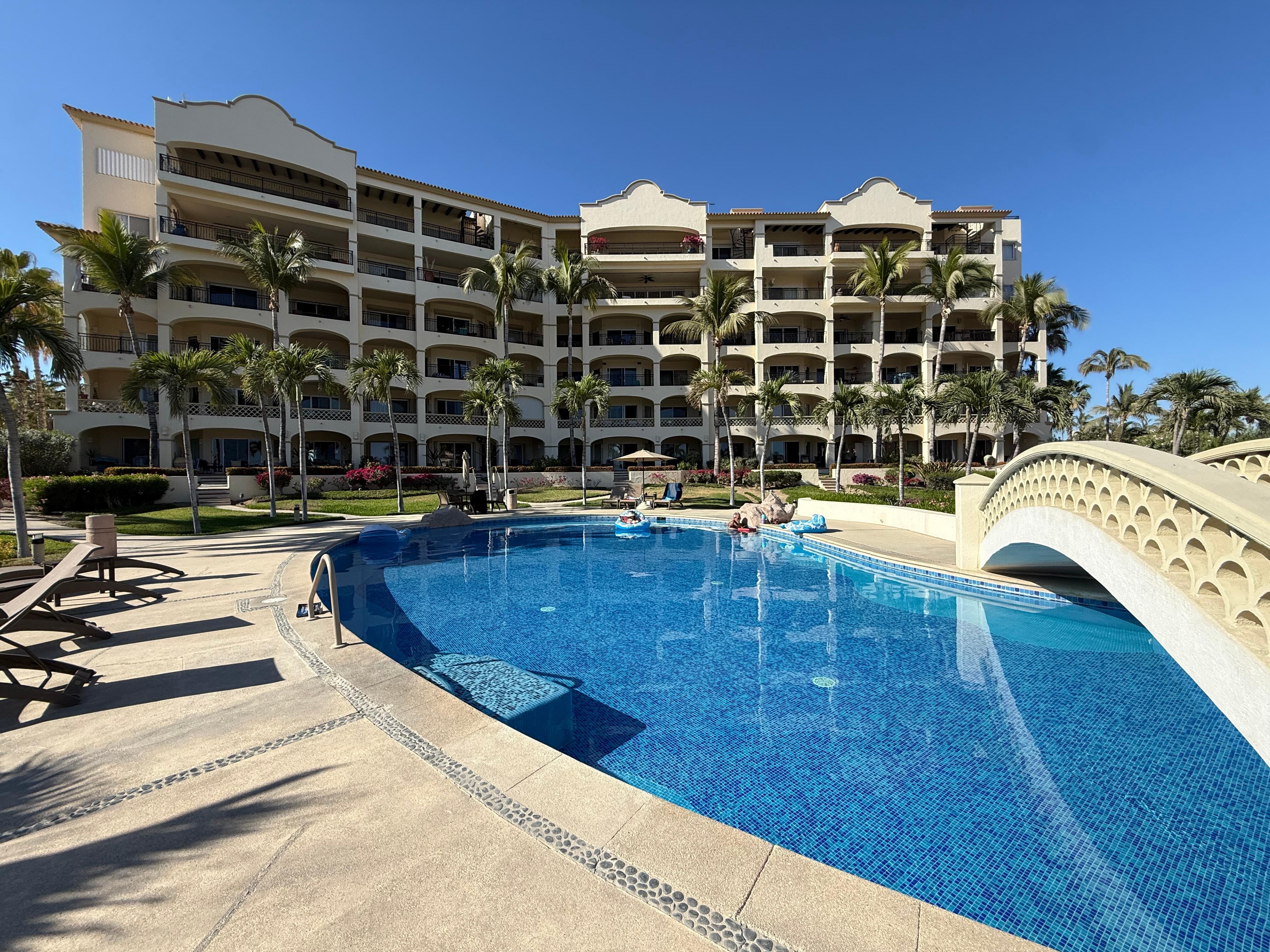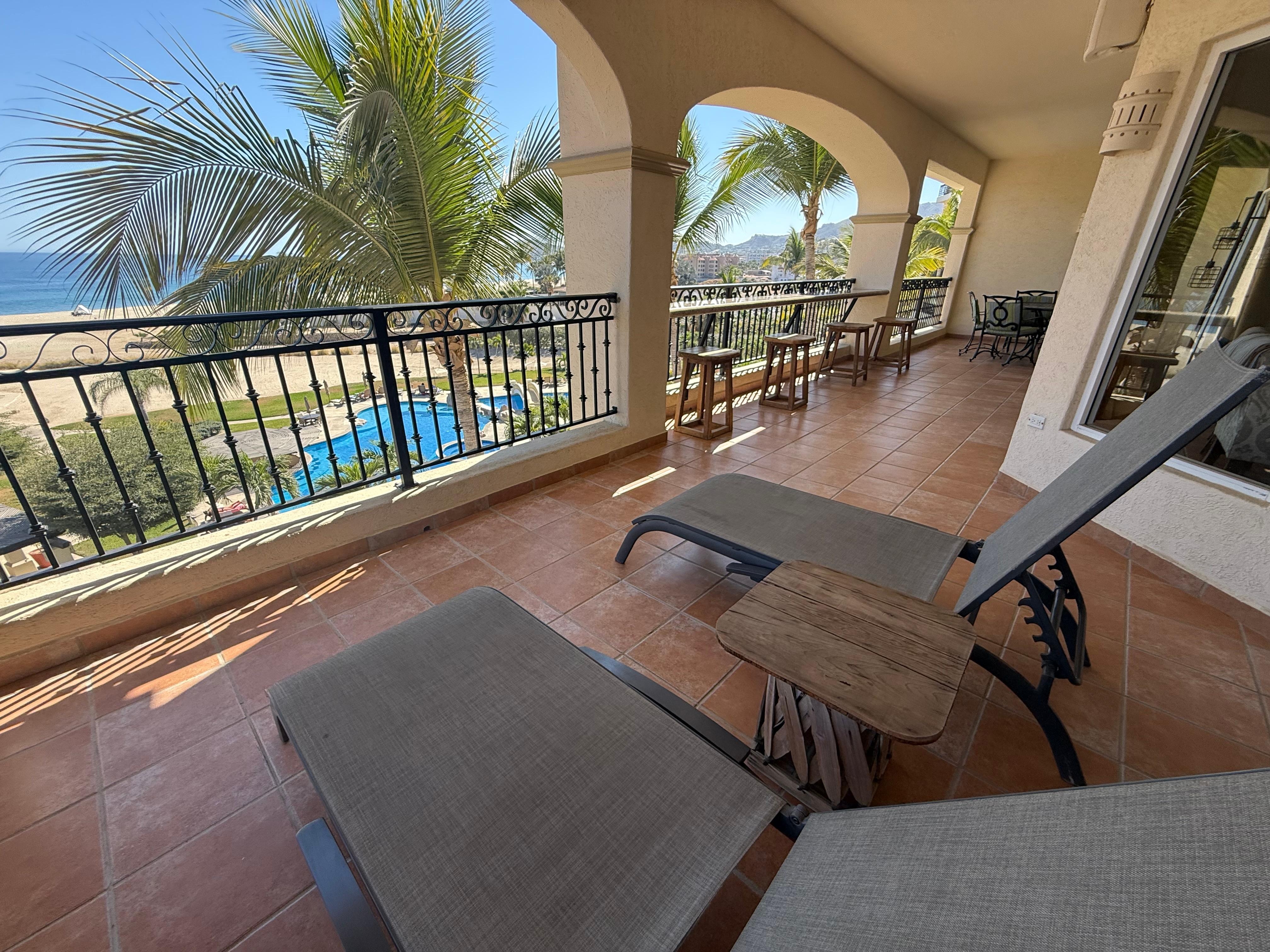 Come to Los Cabos and enjoy an stress-free vacation under the Baja Sun. This luxurious and spacious (1906 square feet), 2 bedroom, 2 bath, beachfront condo is situated in the Playa building of Las Mañanitas. Every room in the condo has stunning views of the Sea of Cortez. Our unit is fully furnished and designer appointed, offering you every luxury. All US and Canadian TV channels available!