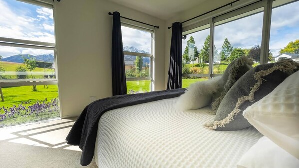 The open plan living area of the house boasts a sunny lounge and dining table which allows you to sit and relax while taking in the views of the Remarkable Mountains. The house has a lovely fully equipped modern kitchen. The wood fire is yelling at you to grab a good book and a drink (wine or coffee depending on the time of day) and making yourself comfortable on the couch - you may never want to leave.