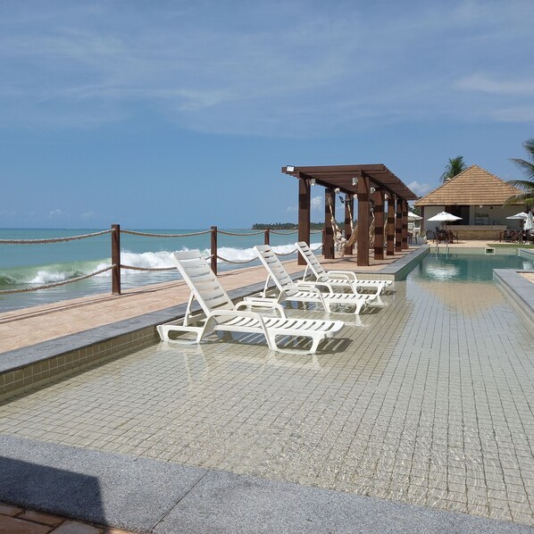 Este apartamento na praia conta com piscinas externas