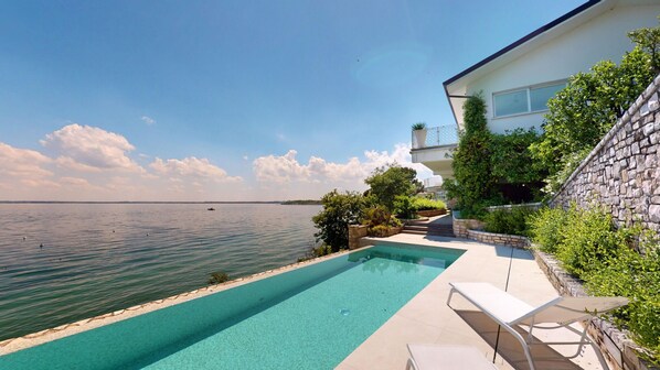 Prestigious villa on Lake Manerba del Garda with pool, private beach and stunning lake view.