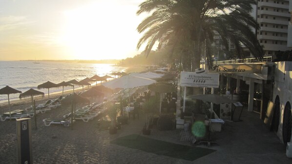 The apartment comprises: WIFI, Living room with dining area and 45” Flat screen Sky TV with full sports package and movies, leading to sun terrace with 2 sun loungers, table and 4 chairs overlooking swimming pool; also a rear sun terrace for late evening sun. The kitchen has just been completely refurbished (January 2016) with new cupboards, work surface an American fridge freezer with iced filtered water on tap, new hob, oven, microwave,dishwasher, Also there is a, kettle, toaster, washing machine and access to the terrace; Master bedroom with king sized double bed, ceiling fan, en-suite bathroom and access to terrace; Second bedroom with twin beds ceiling fan and en-suite shower room; Third bedroom with twin beds and ceiling fan; Fourth bedroom with double bed and ceiling fan; Third bathroom; Underground parking space available for an additional 7 euros a night. Three swimming pools, one of which is a paddling pool. The grounds are all enclosed and a key is required to enter or leave the premises. The apartment was freshly painted at the end of 2017. The apartment has central heating. There is a lift up to our floor. To see on Google Earth, search under "Marbella", then it is on co-ordinates 36 30 33 12" N, 4 53 33 07 W. You can check out the video on the photos part of this web site and that should give you a good in depth view of the property