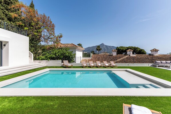 Esta vila nas montanhas tem uma piscina externa e fica perto de Marina de Puerto Banús