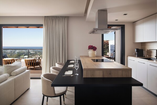 Este apartamento de frente para o lago em Marbella tem piscina externa.