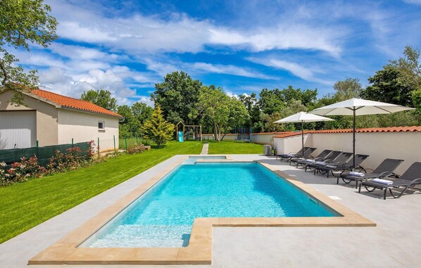 Esta casa de temporada em Marcana dispõe de piscina particular e cozinha