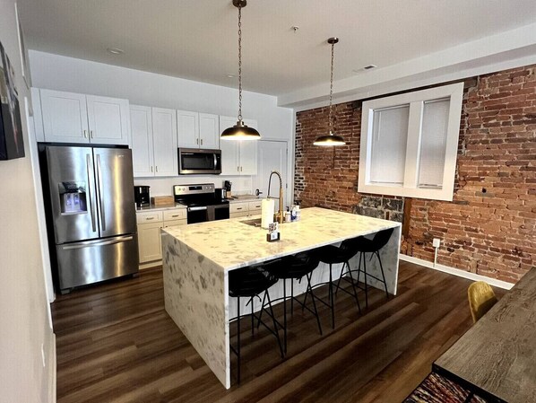 Come stay in the beautiful Kensington Palace Airbnb! This one bedroom, one bathroom apartment with gorgeous brick accents, will make you fall in love the second you walk through the door. It is centrally located in Martinsburg close to all the best shops and restaurants. An easy travel away from breweries, wineries, hiking, tubing, and much more. Free high speed wifi that can take care of all your work or entertainment needs. Monthly parking pass available upon request for long-term stays.