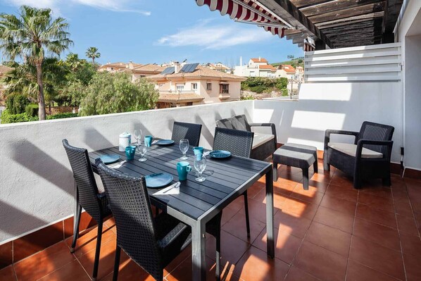 Este apartamento em Mijas dispõe de cozinha e pátio