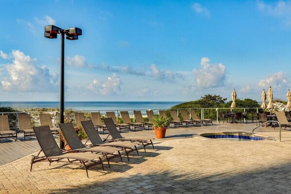 There is complimentary access to the Summit private pool that the balcony overlooks, the beach front pool adjacent to The Blue Dunes Grill and the Tops`l private beach area.