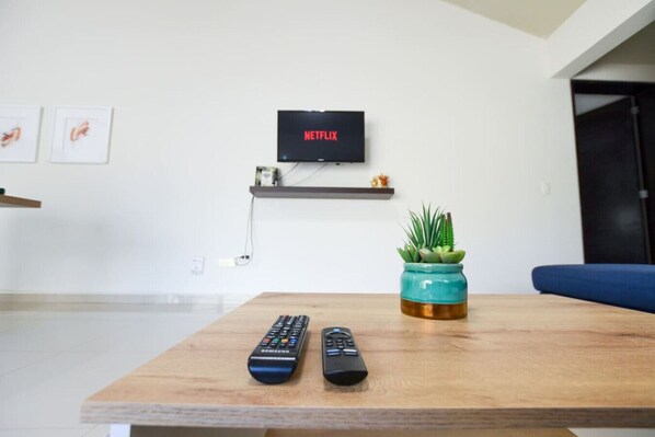 Wifi, Smart TV en sala y recámara principal, climatizado y cajón de estacionamiento privado.