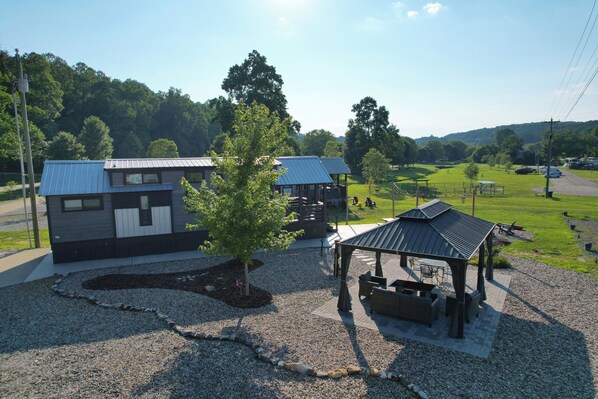 Tiny home mountain retreat w/ view, covered outdoor patio, fire pit