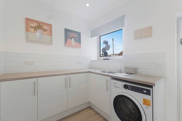 The kitchen is equipped with all the essentials needed to cook an array of meals whilst away in South Shields. There is an electric hob, oven, fridge/freezer, microwave, & washer.