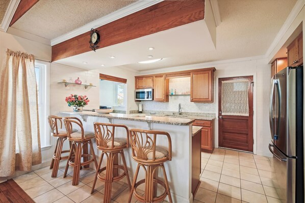 With over 2100 sq ft, this 4-bedroom 2.5 Bathrooms, sleeps 12, house located on the water with its own private pool and spacious fenced in yard. The remodeled kitchen has new cabinets, granite countertops and all stainless appliances. Don't let the pictures deceive you, this house is bigger than it looks...Plenty of room, inside and out, to meet the needs of every traveler.