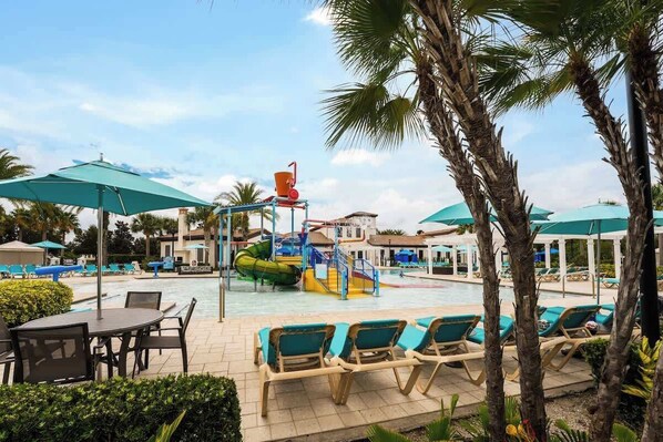 ⎯ Gated resort w/ big pool, lazy river, and splash pad