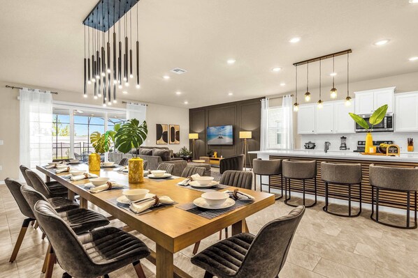 Step out onto our expansive patio and soak in the Florida sunshine. Unwind by the sparkling pool, indulge in a barbecue feast, or simply relax under the starlit sky. Our villa provides the perfect setting for unforgettable moments with loved ones.