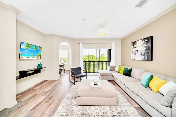 • Cozy living area with Smart TV and plush seating