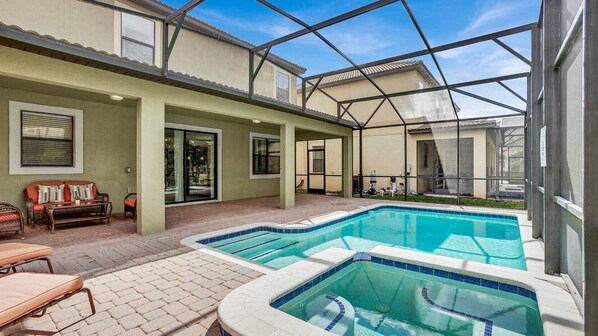 This home is packed with entertainment! First, the private pool and spa will have you swimming each and every day in the privacy and comfort of your vacation home. The screened-in lanai also features plenty of seating and sun loungers, perfect for soaking up some of that famous Florida sunshine.