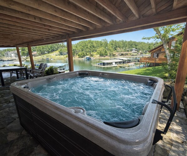 Stone Villa Lakefront Home 3BD/3BA/Hottub/Firepit/Dock-10PP