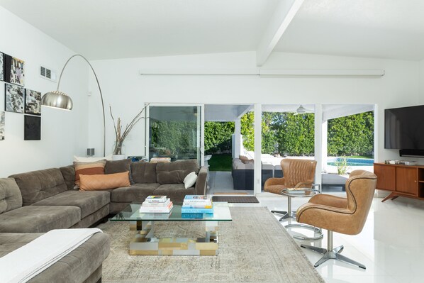 Walk into this stylish Palm Springs vacation home & you'll find fabulous furnishings with walls of glass looking out to the pool area. With an open floor plan, it's easy to enjoy dining & entertaining with friends & family.