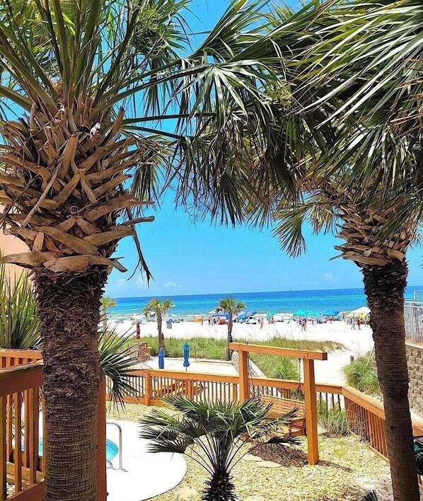 Ambassador is a Gulf-front complex with direct beach access, a community pool, hot tub, and BBQ grilling area. Its unbeatable location puts you within walking distance of Pier Park, Russell-Fields Pier, and a variety of beachfront restaurants, bars, and local shops. Whether you're looking to unwind with ocean views, walk to dinner and entertainment, or simply enjoy a quieter stretch of Panama City Beach, Ambassador offers the perfect home base.