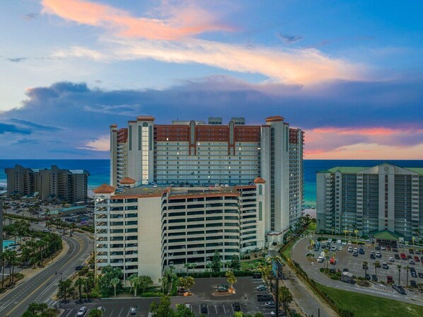 The Shores of Panama Resort Area: Get ready to be wowed because you are in store for a great vacation! Shores of Panama is a 23-story Gulf-front luxury resort located in the heart of Panama City Beach and, as its name suggests, perfectly situated right on the beach. This resort is renowned for its nearly 500 linear feet of stunning, white-sand coastline. Shores of Panama features a 14,000 sq. ft. lagoon-style pool, an indoor heated pool with hot tub, modern fitness center, 2 poolside tiki bars, and more.