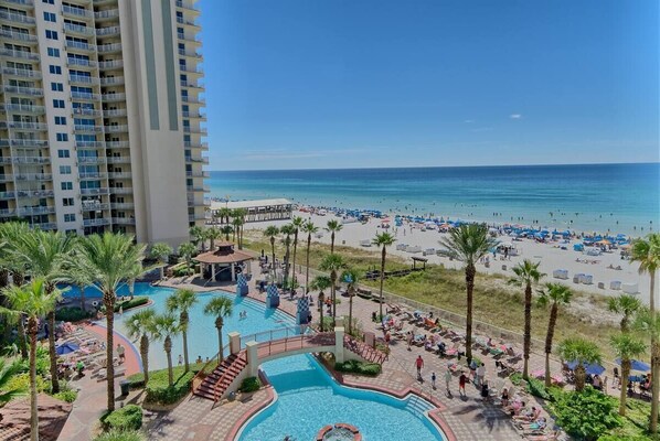 - HUGE PRIVATE balcony with poly wood furniture to enjoy the AMAZING VIEW of the MASSIVE Lagoon pool, hot tub, Beach & Ocean