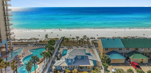 Nestled in a serene, gated community, our resort is ideal for a family stay with all the amenities you could want, including 11 pools (5 heated seasonally and one beachside), a full-service beachfront restaurant with facilities, putt-putt, tennis courts, pickleball, shuffleboard, playgrounds and more! In addition to those amenities and the hours of entertainment in your own back yard, there is a walking path from the resort leading to the Shoppes at Edgewater with topnotch restaurants and entertainment venues such as FireFly, Dee's Hangout, American Charlie's, Pink Pelican Ice Cream Bar, Rock'It Lanes bowling, Axe throwing, and Escape rooms! We are also just a mile from Shipwreck Island Water Park and less than a mile from Just Jump Trampoline Park, WonderWorks, Coconut Creek Family Fun Park and Ripley’s. Explore nearby attractions including Bayou on the Beach and Saltwater Grill. We are just 5 miles from Pier Park, with all of its fabulous shopping, dining and entertainment!