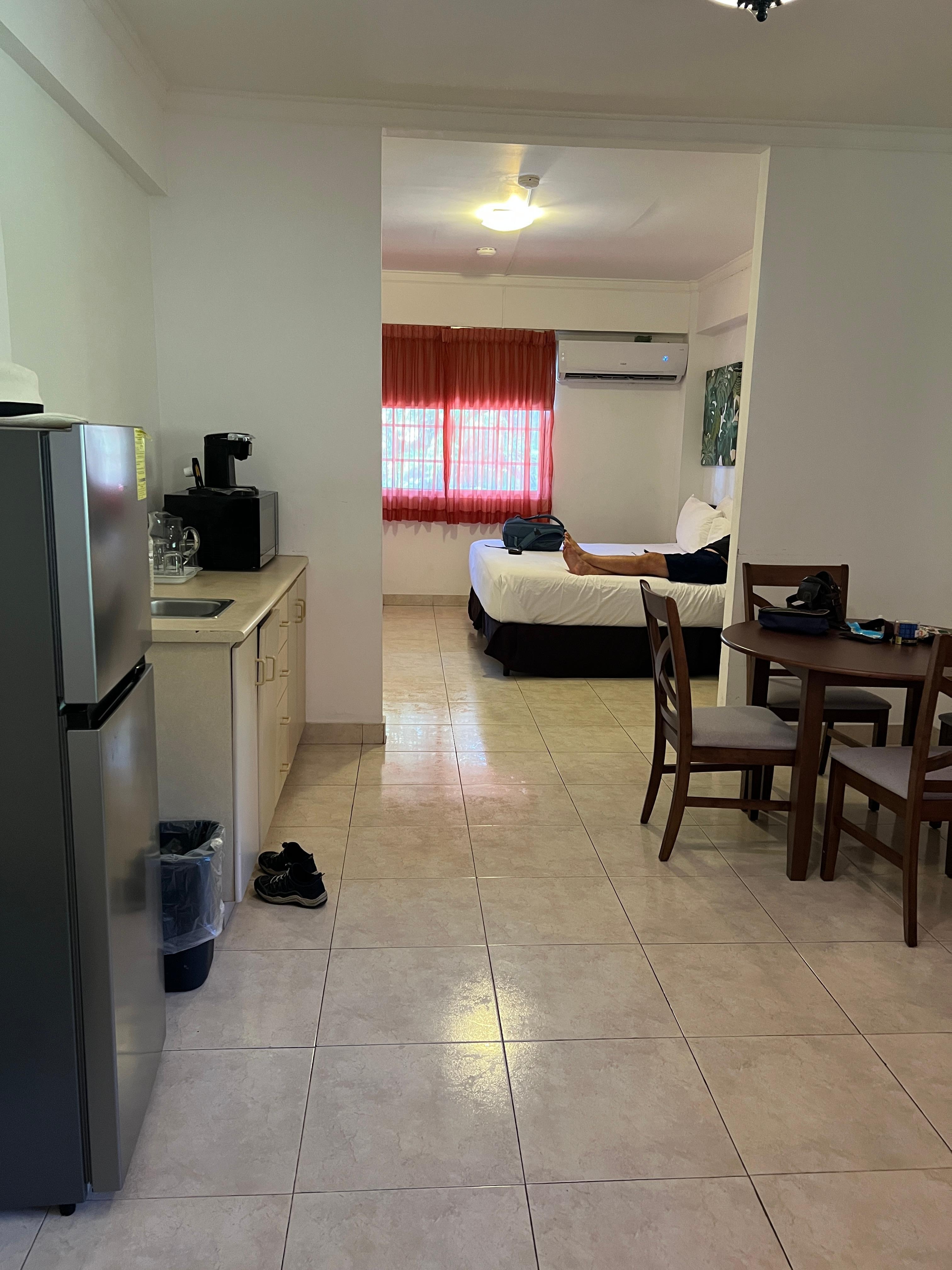 The bathroom grout is very very moldy and looks really gross. It was hard to even think of wanting to get in the shower. As soon as you walked in you see a very large smashed mosquito on the wall which I’ve read about by another previous traveler but thought no that would have been cleaned up ?? Nope still there… It’s very loud and the water runs very loud from neighbors bathroom which I assume makes it an older building.A plus is the great breakfast and close proximity to everything in Panama City. However, had to say I would never go back to the hotel. The staff was nice though. One lady put my food in the Steph refrigerator since there are no refrigerators in the room that was very nice of her. This is the only time I’ve written a bad review so makes me sad to do that.
