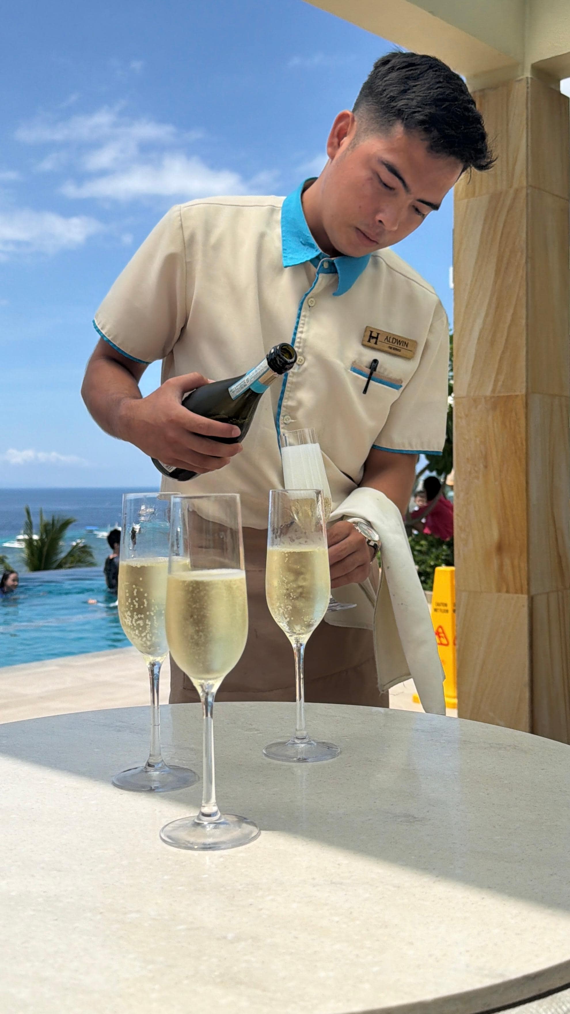 La chambre avec vue sur mer était très agréable, les différentes piscines et plus particulièrement celle sur le toit est incroyable. Le personnel nous a laissé la chambre un peu plus longtemps que prévu lors du check-out.