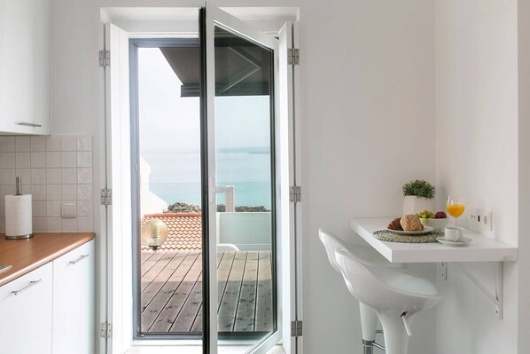 De frente para a água, este apartamento dispõe de cozinha e uma sacada