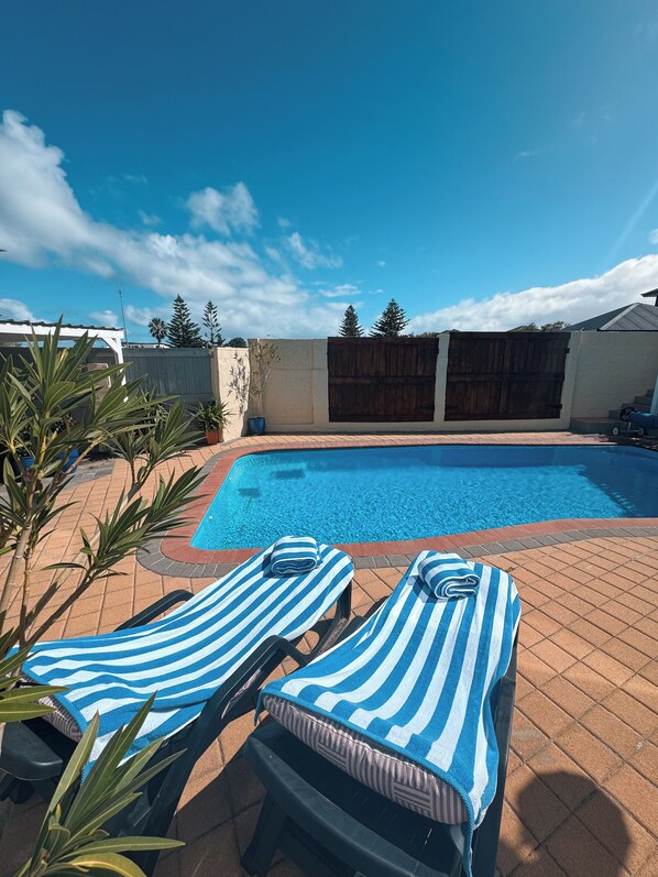 A coastal gem with private entrance & parking occupying entire ground floor. Enjoy the refreshing pool or walk down to the sandy shores and swim in the Indian Ocean at Quinns Beach with its safety net..