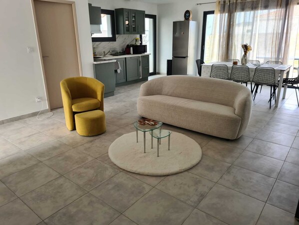 You will find four comfortable rooms, each equipped with a bed 160x190, perfect for restful nights. The house also has a fully equipped kitchen and two shower rooms. After a day of discovery, relax in the spacious lounge.
