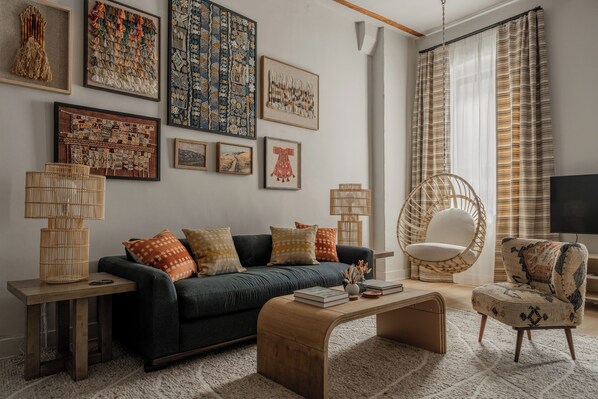 Welcome to The Artisan—a meticulously restored boutique building featuring custom-designed lofts that celebrate the timeless craftsmanship of artisans. Your unique rental, The Weaver, is a sophisticated 3-bedroom, 2.5-bath bi-level loft with 1 car off street parking in our private courtyard (electric vehicle charging available via Tesla super chargers). Inspired by the fluidity and movement of handwoven textiles, this beautifully designed space is a tribute to artisans who transform thread into art. Every detail reflects the intricate interplay of texture, pattern, and craftsmanship, creating an immersive and harmonious retreat. The property’s renowned designers worked tirelessly to craft and source one-of-a-kind pieces, capturing the true essence of The Artisan’s vision, while simultaneously creating the most unique and luxurious stay in Philadelphia. The space features: • Private entrance direct from the courtyard and garden, offering added convenience and exclusivity. • 1 car off street parking in our private and gated courtyard (Limited to small/medium sized vehicles as turning and navigating the courtyard is very tight) • EV charging stations via Tesla superchargers • Fully equipped kitchen with every essential , including locally sourced high end coffee • Private washer/dryer access • Shared access to gym, courtyard, garden, and multiple balconies & decks
