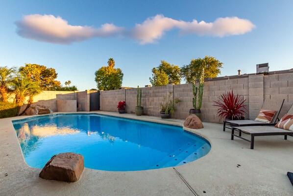 Welcome to your desert oasis in the heart of Scottsdale! Our four-bedroom, two-bathroom house is the perfect retreat for your group getaway, just a five-minute drive from the vibrant Old Town Scottsdale.