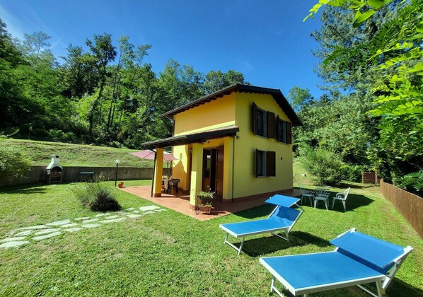 Casina Piazza é uma encantadora casa ribeirinha isolada. A propriedade foi cuidadosamente renovada e oferece privacidade e romance - é possível ver o rio pelas grandes janelas do quarto e ouvir a água borbulhando enquanto estava deitado na cama ..... O rio é represado para permitir mergulhos refrescantes e uma pequena piscina privada no jardim, com refeições ao ar livre fornecidas pela varanda coberta ... A piscina é ideal para relaxar e se refrescar, e se você quiser nadar seriamente, por que não entrar na vila e usar a grande piscina externa (muitas vezes você será a única ali, pois os moradores não costumam usá-la até a tarde!).