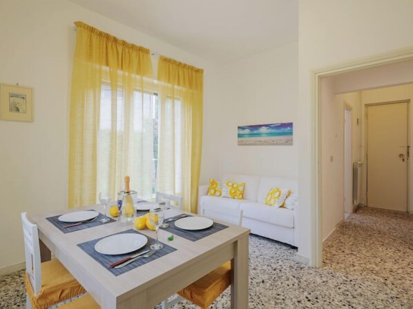 "Manuela", 2-room house 50 m2, on the ground floor. Very comfortable and cosy furnishings: living/dining room with 1 double sofabed, dining table and TV (flat screen), fan. Exit to the garden. 1 double bedroom with air conditioning and fan. Small kitchen (4 hot plates, dishwasher, freezer, combination microwave). Shower/bidet/WC. Gas heating, air-conditioning. Heating available only from 01.11. to 15.04. Garden 50 m2. Terrace furniture, barbecue (portable). Distant view of the mountains. Facilities: washing machine, iron. Internet (WiFi, free). Parking (fenced 1 car). Please note: suitable for families apartment courtyard side. IT046024C22H8T6WB3