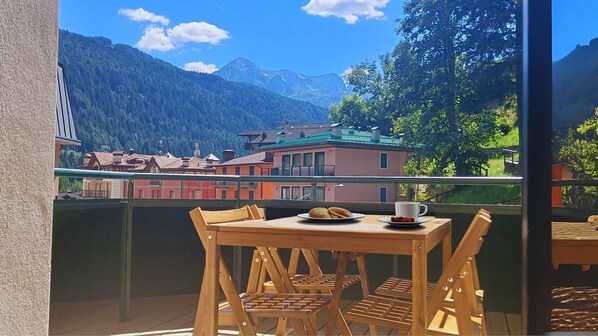 Este apartamento em Ponte di Legno dispõe de cozinha e sacada