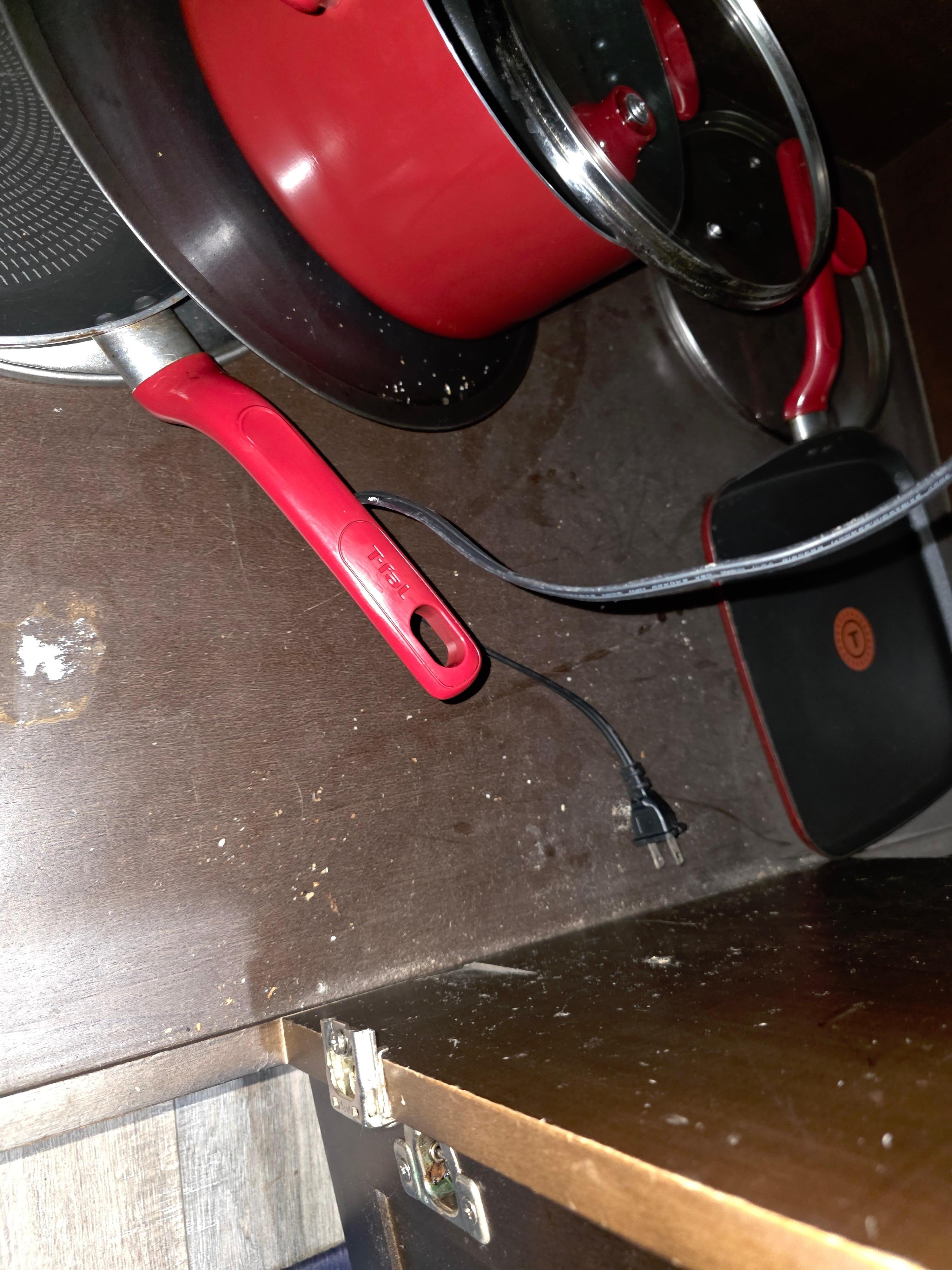 Cooking basics which include pots, pans, crockpot, salt, pepper and oil.