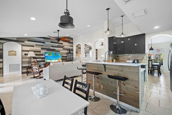 Welcome to your home away from home! This spacious 4BR/2BA retreat offers everything you need for a relaxing and fun-filled stay. Enjoy a private pool, BBQ grill, smart TVs, fast Wi-Fi, and open-concept living spaces. The fully equipped kitchen is perfect for cooking at home. Just minutes from beautiful beaches, great dining, and local attractions—ideal for families, groups, or a peaceful escape.