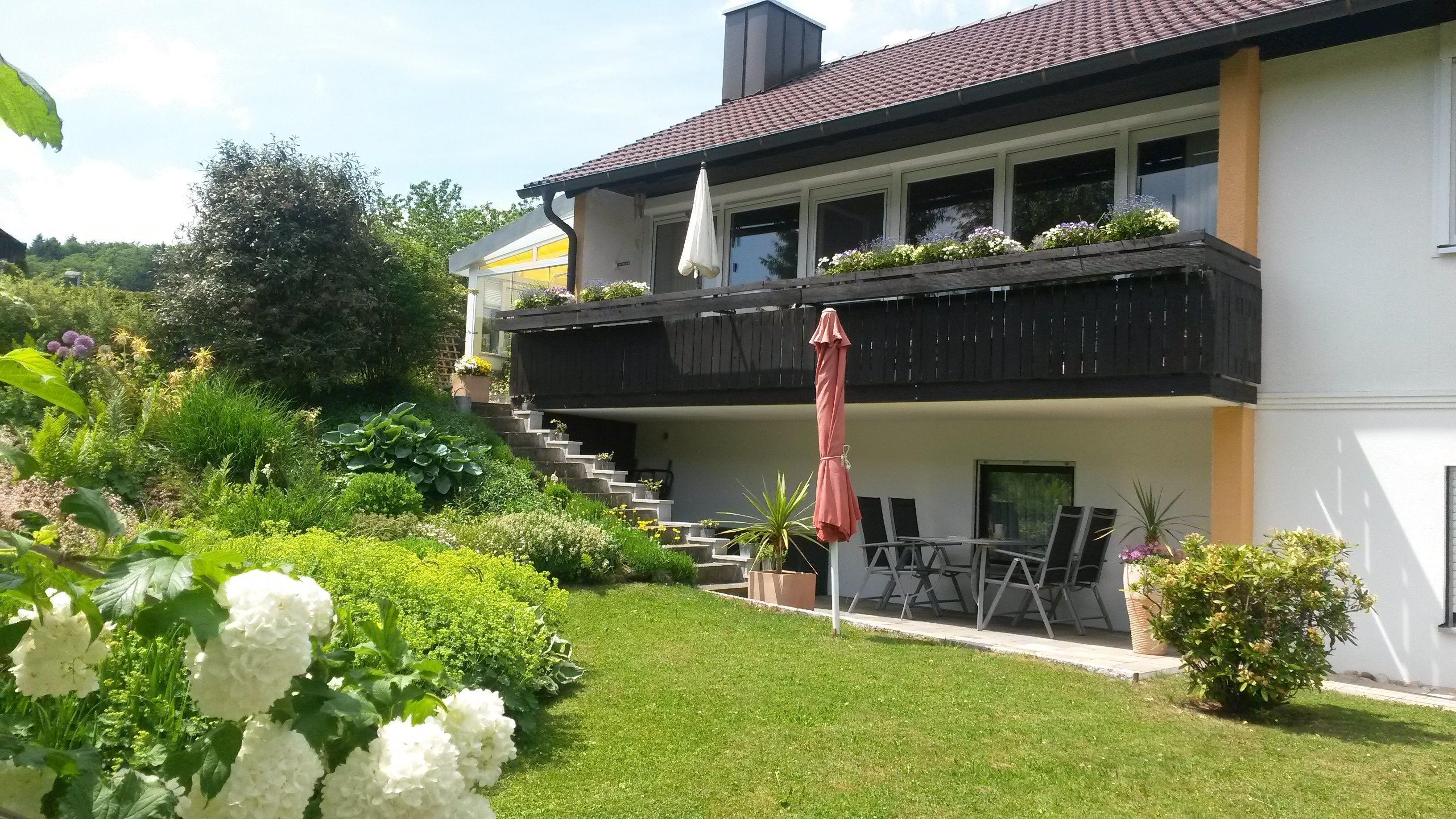 Apartments Harberberger ... be a guest at home! In our house you will find on the ground floor two spacious, comfortable and comfortably furnished apartments for 2-4 persons. These apartments are regularly tested by the DLG, have been awarded 4 stars and have been awarded the title of "guest recommended house". Information around the house: You have the opportunity to use the hotel sauna, lawn, children's play area, garden shed with barbecue, table tennis, trampoline, parking at the house (washer / dryer, telephone on request). On our farm (100 meters away) you will find cows, pigs, chickens, pigeons and cats. The very popular bread service makes it possible for the rolls to be brought to your door every day (Mon-Sat) at around 8:00 am - without you having to get up. You can buy home-made products (eggs, milk, juniper-smoked ham - specialty of the house - from the house slaughter). For gourmets, we offer delicacies from the road, meadow and forest edge: With an herb guide you can recognize, determine and eat wild herbs - an unusual and healthy way to enjoy Un-herbs. Look forward to a few days of relaxation in the Franconian Switzerland. A beautiful landscape in a charming location and the many recreational and recreational offers make this beautiful area a popular holiday and hiking paradise for young and old.