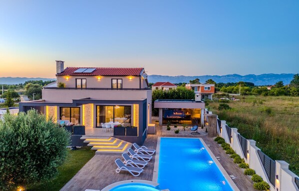 Esta casa de temporada em Privlaka dispõe de piscina particular e cozinha