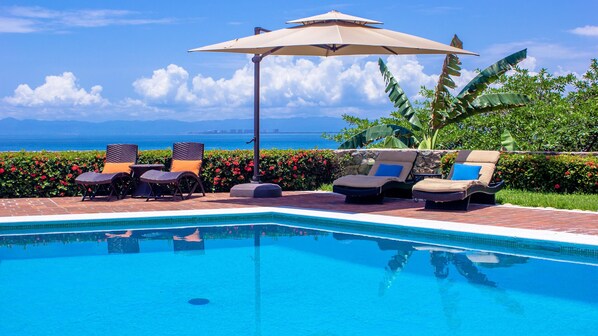 The pool is surrounded by the ocean view of Bandera’s bay, The spacious terrace is the perfect place to enjoy the sunset or lounge away the afternoon.