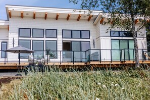 Welcome to Whispering Waves, an executive waterfront home overlooking Deep Bay Marina. This newly built contemporary home sleeps 6 people & features floor to ceiling windows, vaulted ceilings and a gas fireplace. The house is styled with modern furniture and decor inspired by the west coast. Natural sunlight fills the space with warmth, setting the tone for a relaxed stay. Enjoy endless ocean views & a private beach front. Bring your paddle boards, kayaks & canoe and enjoy oceanfront living.