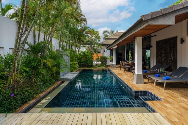 Nice 3 bedrooms pool villa with modern tropical design, furnishing with Asian elements, be a calm and private place. The total size area is 400