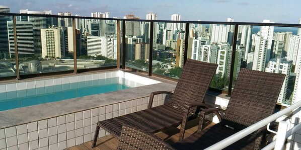 Este apartamento com piscina particular fica perto de Praia de Boa Viagem